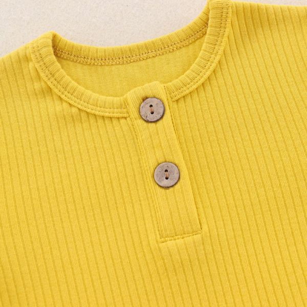 Design: Children's spring and autumn solid color suit, round neck long-sleeved top, button closure, easy to put on and take off, drawstring elastic waist trousers.